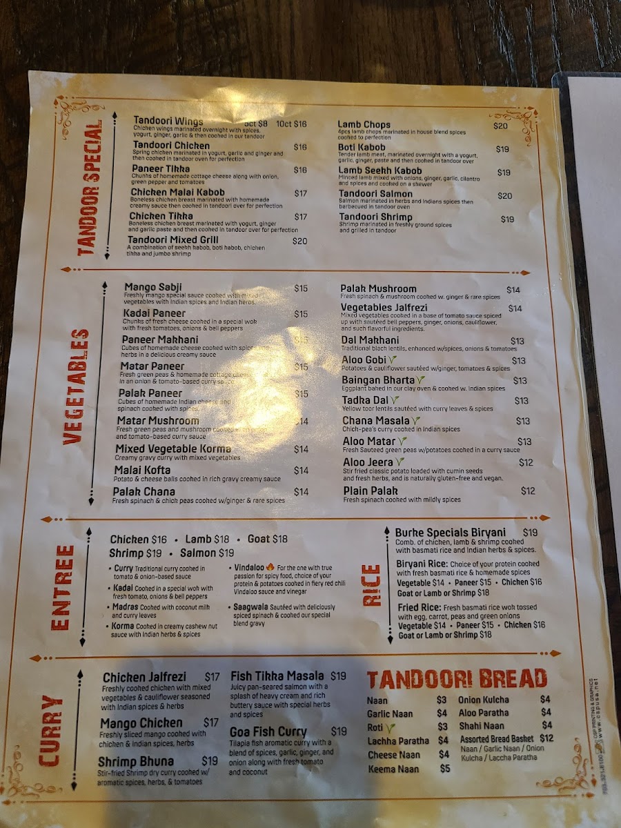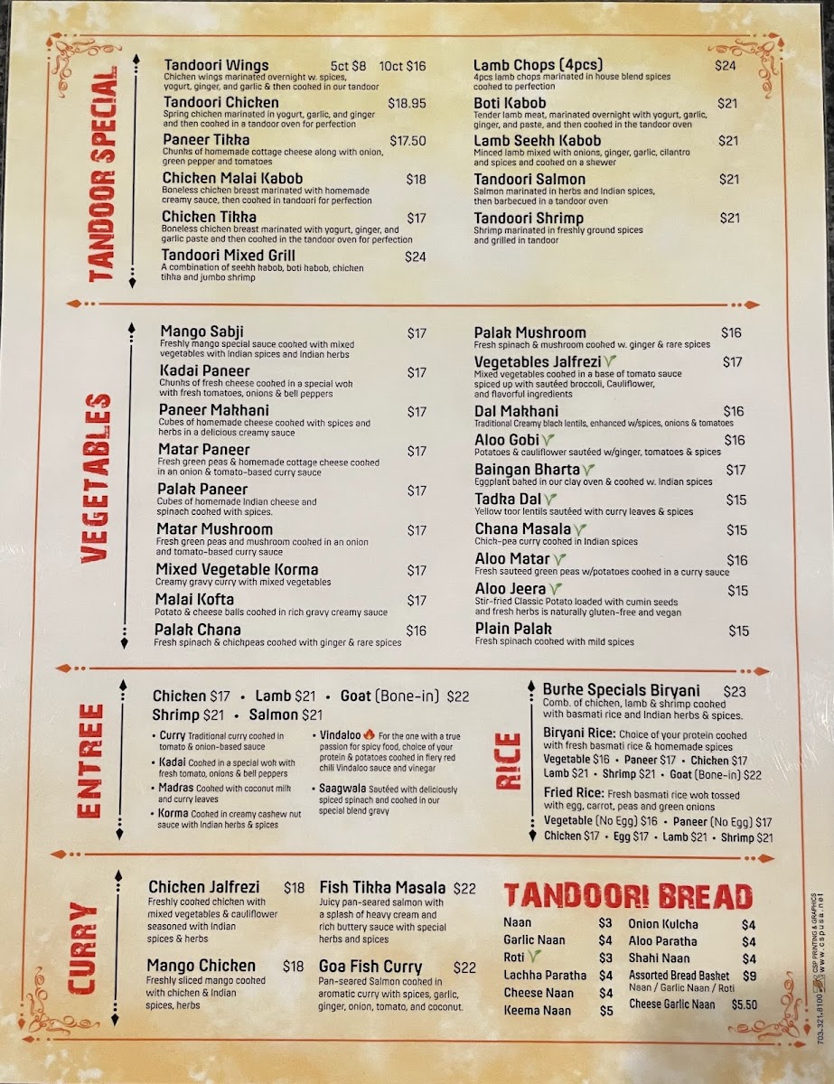 Curry House Burke Menu